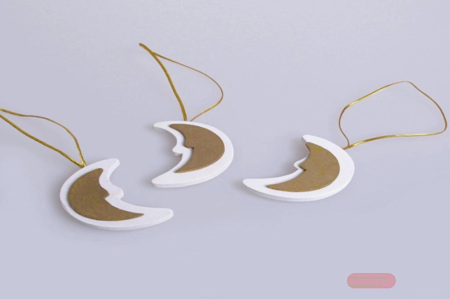 Anhänger, Holz-Mond 5cm, weiss/gold