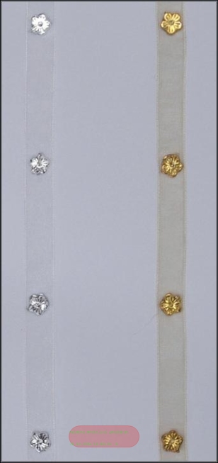 Band 10m/ 10mm, Organza mit Blüte, weiss/silber