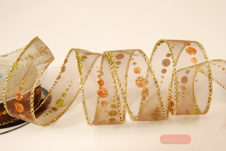 - Band 10m/ 25mm, Glitzerkugel farbig, braun/kupfer
