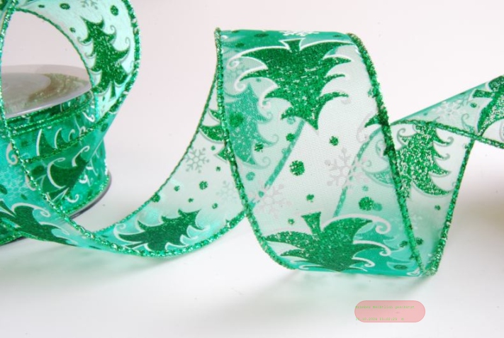 Band 10m/ 40mm, Glitzer-Tannenbaum, grün