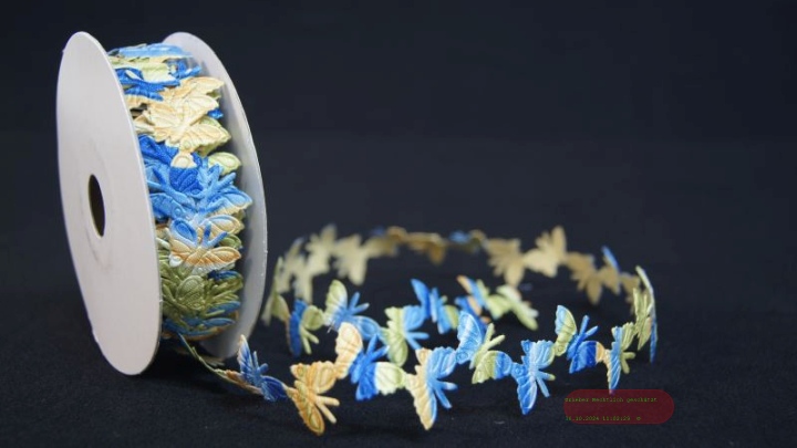 - Band 10y/ 27mm, Schmetterling klebend, blau/bunt