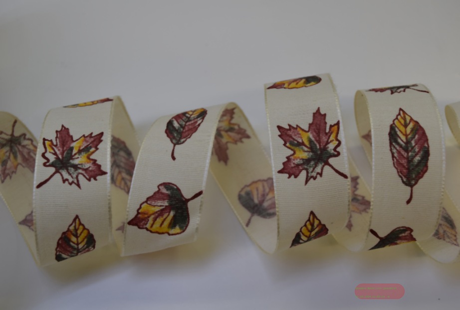 Band 15m/ 25mm, Herbst - mit Blatt, natur