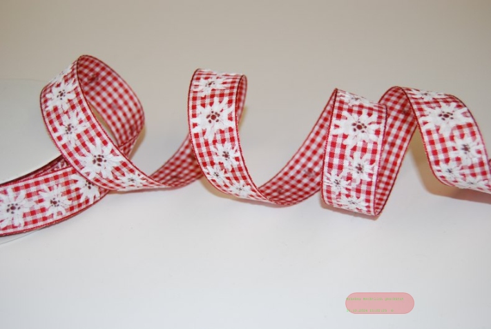 Band 20m/ 25mm, Karo Vichy mit Edelweiss, rot
