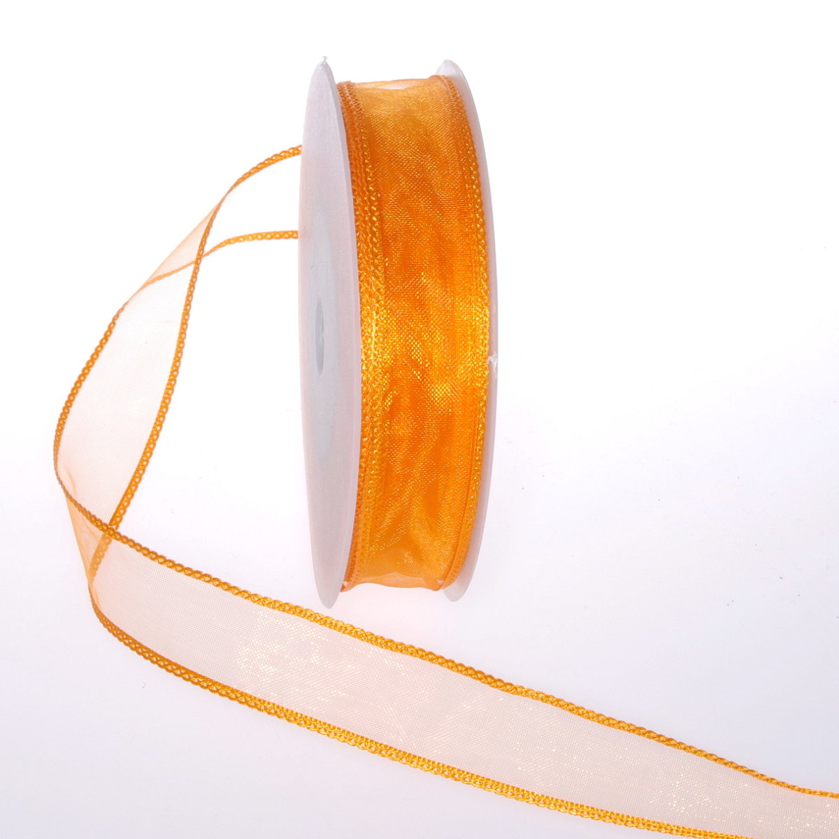 Band 20m/ 25mm, Organza mit Flechtkante, orange