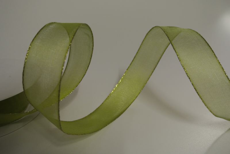 Band 20m/ 25mm, Sheer - gold Ende, lindengrün