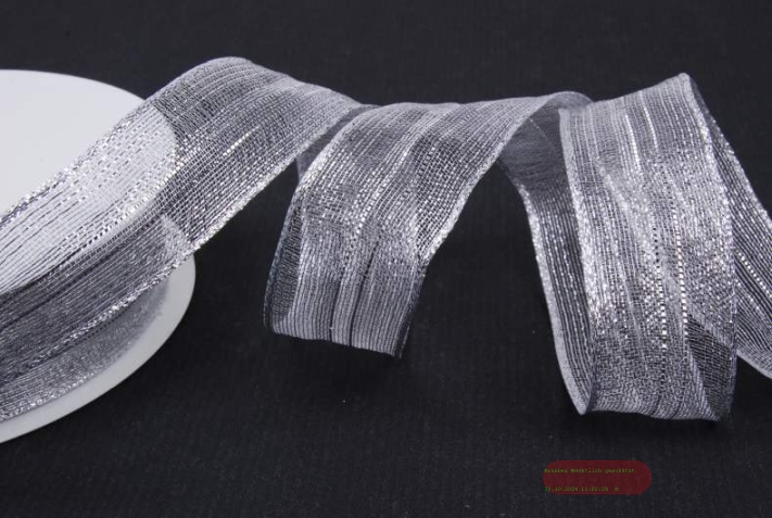 Band 20m/ 25mm, Streifen im Tüll, silber