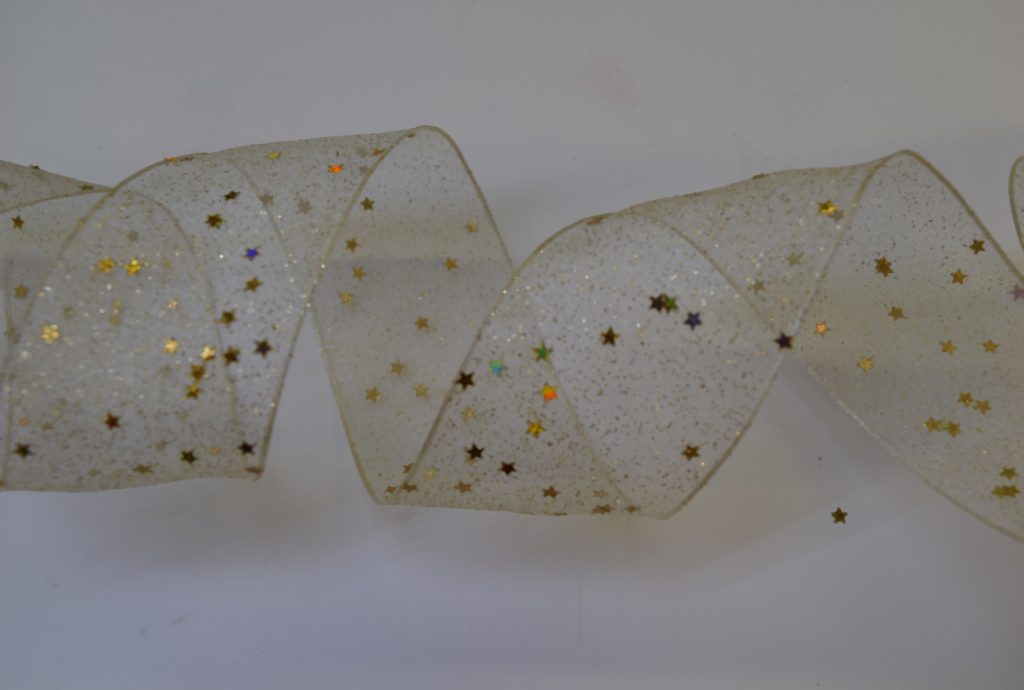 - Band 20m/ 40mm, Glimmer & Sterne Organza, ecru