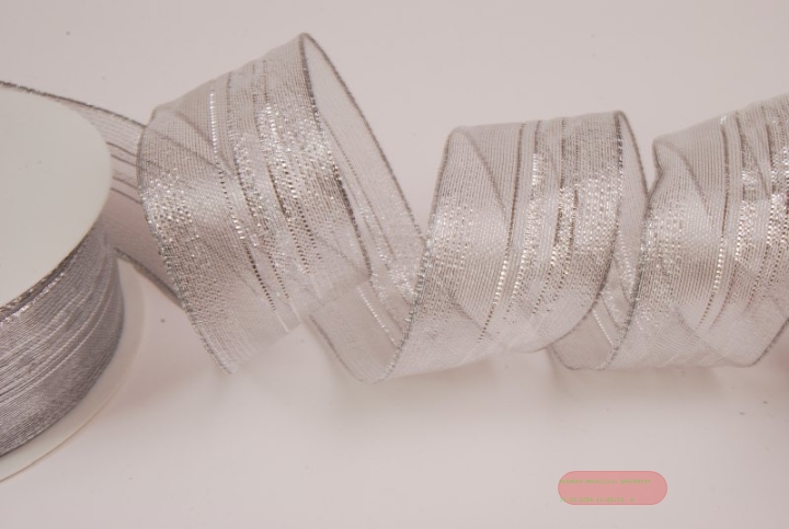 Band 20m/ 40mm, Streifen im Tüll, silber