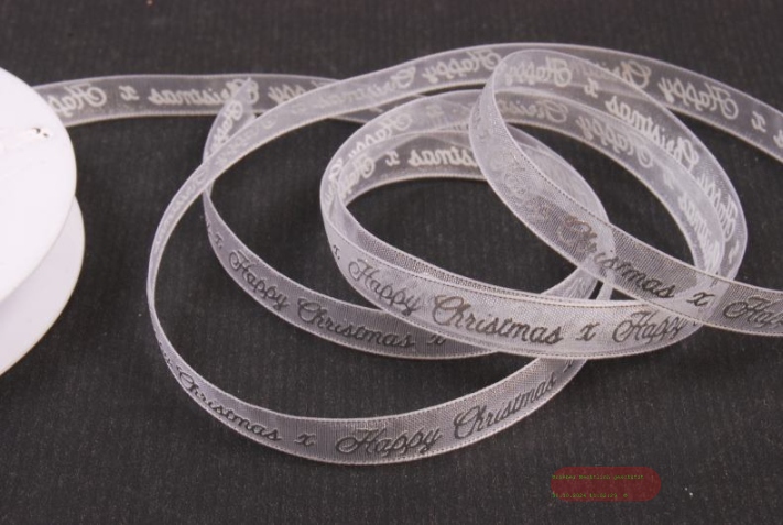 Band 25m/ 10mm, Happy Christmas, weiss/silber