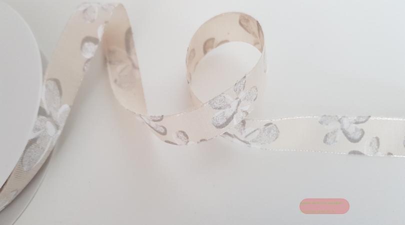 Band 25m/ 15mm, Blumen auf Leinen, natur