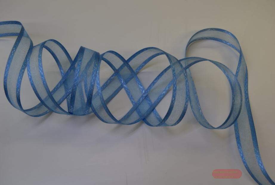 Band 25m/ 15mm, Motiv an Organza, d'blau