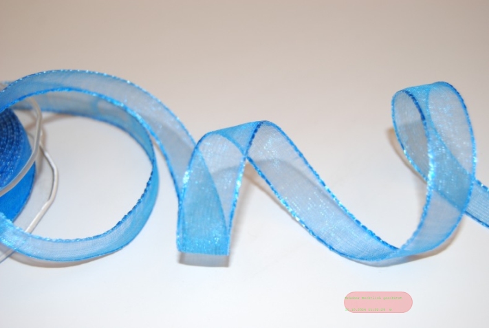 Band 25m/ 15mm, Organza/ Häkelkanten, blau