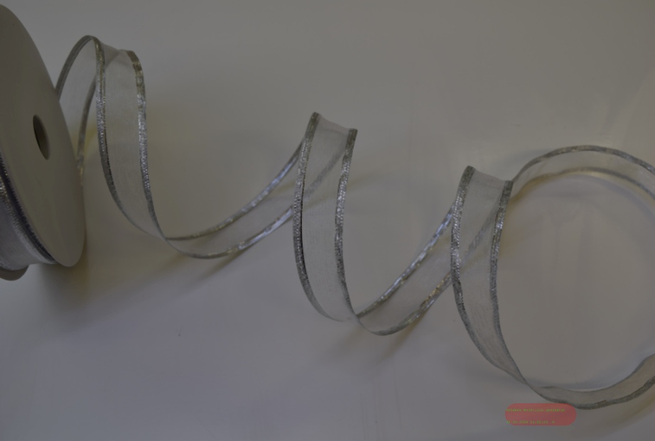 Band 25m/ 15mm, Organza mit Lurexkante, weiss