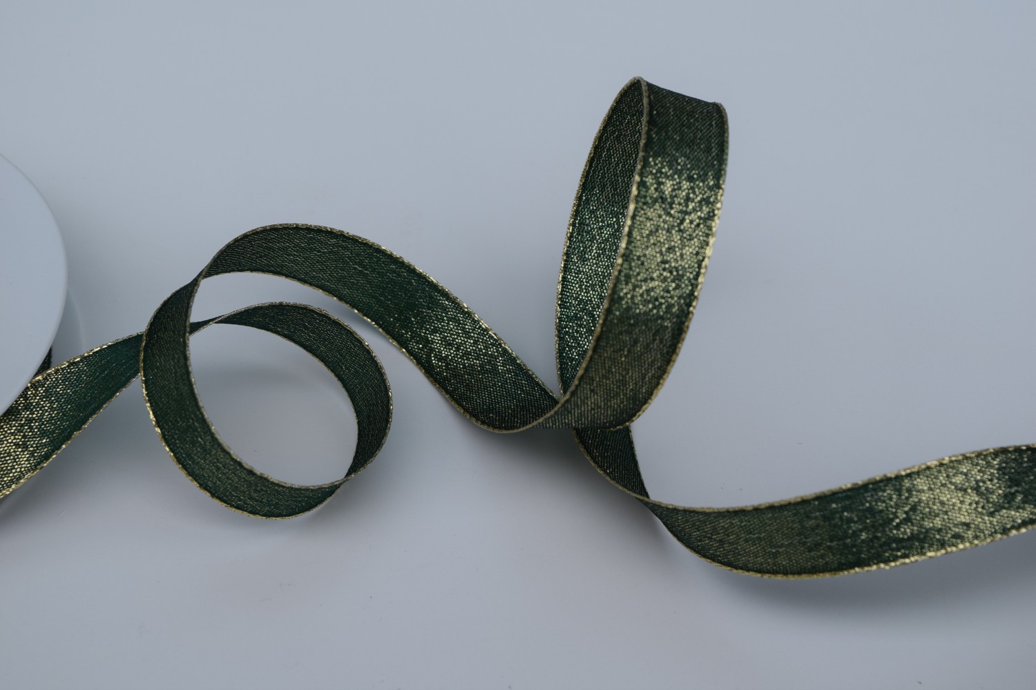 Band 25m/ 15mm, Uni mit Lurex & Drahtkante, grün