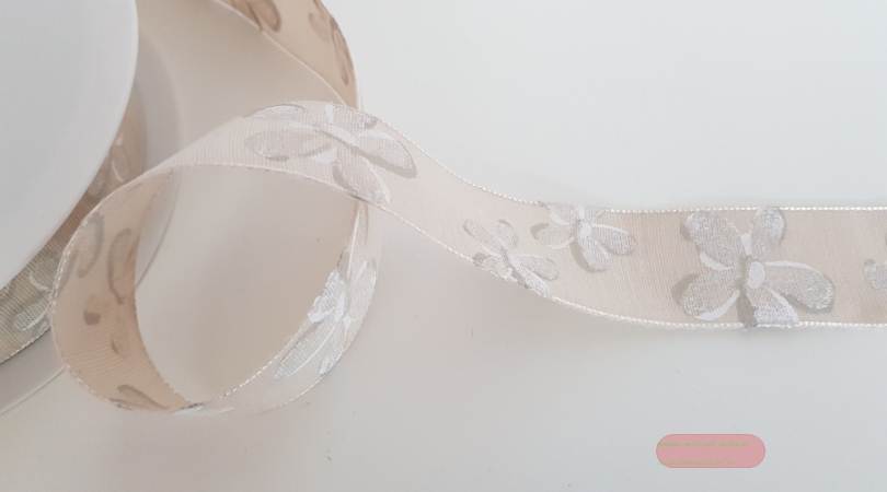 Band 25m/ 25mm, Blumen auf Leinen, natur