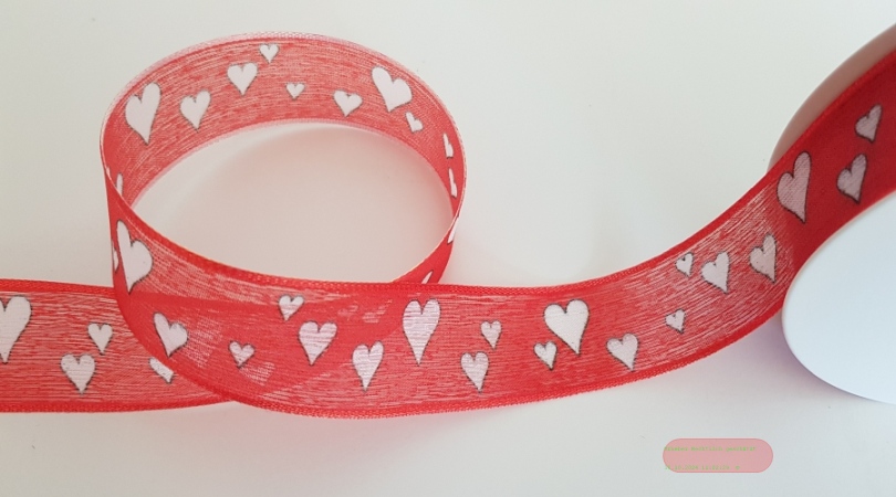 Band 25m/ 25mm, Herz, weiss-rot