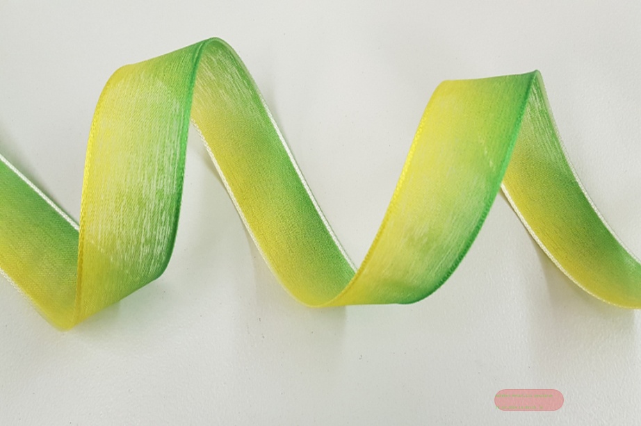 Band 25m/ 25mm, Organza 2-farbig, grün-gelb
