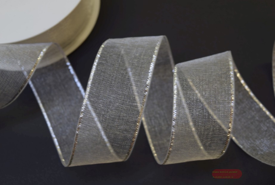 Band 25m/ 25mm, Organza mit Lurex, weiss/silber