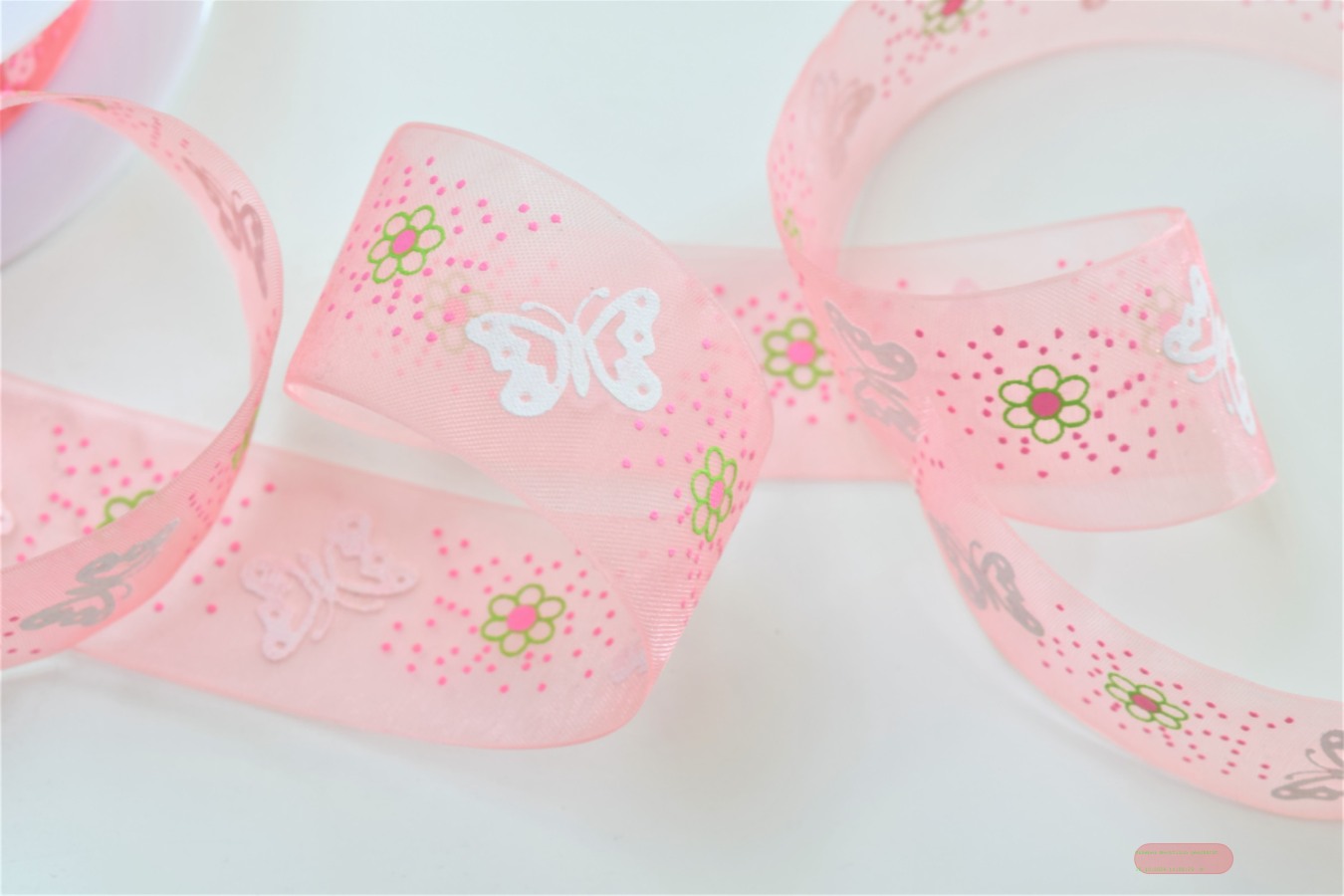 Band 25m/ 25mm, Organza m.Schmetterling, pink