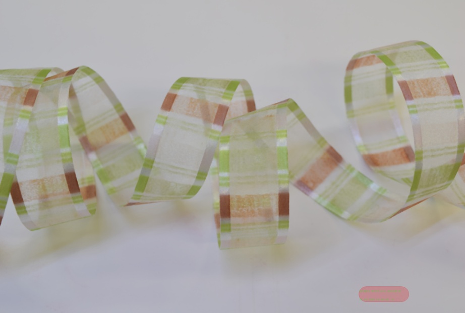 Band 25m/ 25mm, Organza Streifen, braun/grün