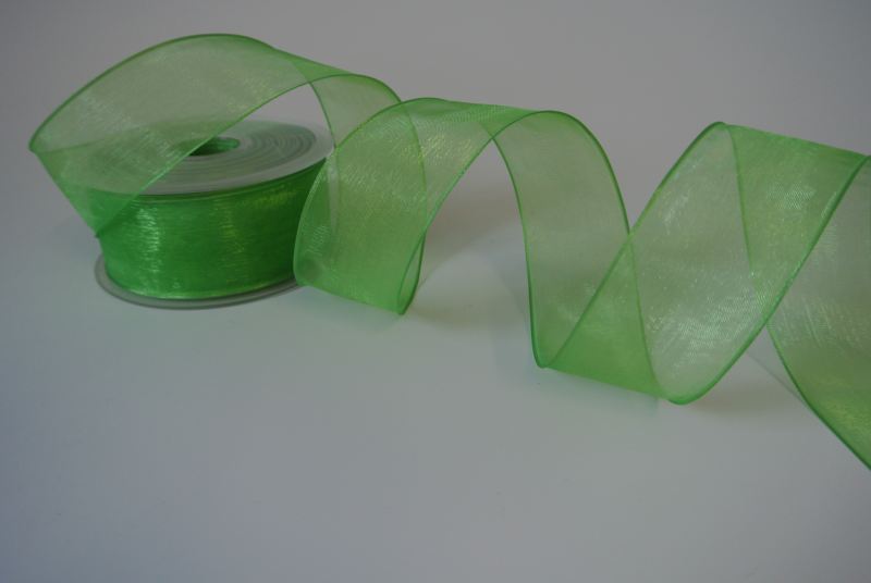 Band 25m/ 38mm, Shiny single color, Draht, lindengrün