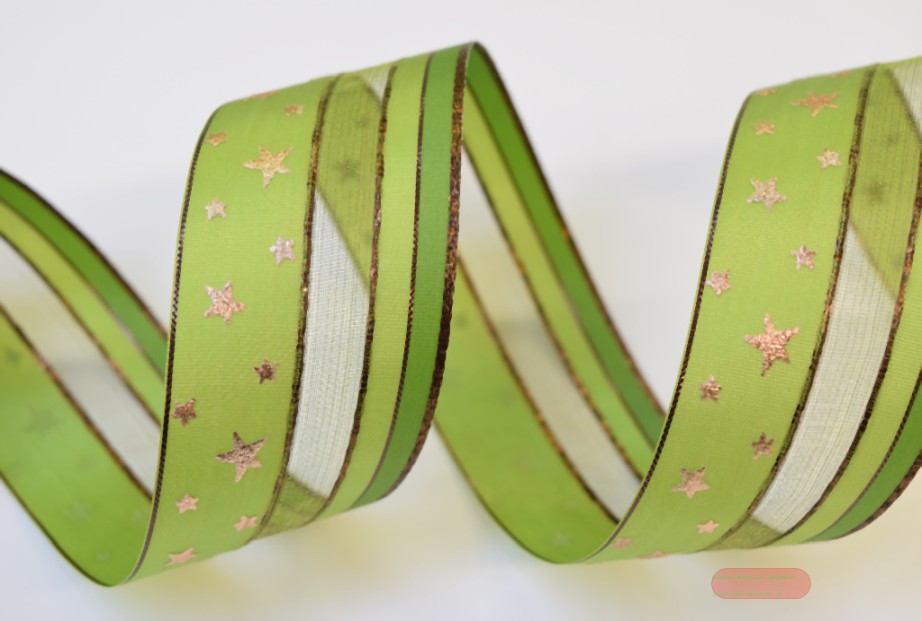 Band 25m/ 40mm, Org. mit Sternen assy, grün