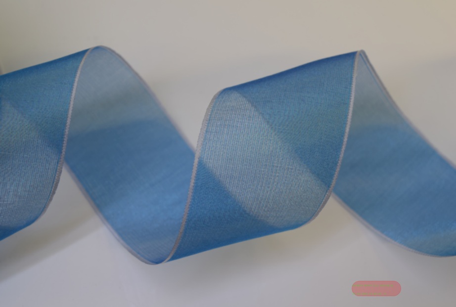 Band 25m/ 40mm, Organza mit Rand, d'blau