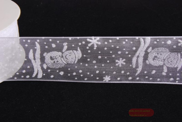 Band 25m/ 40mm, Schneemann Flock Organza, weiss