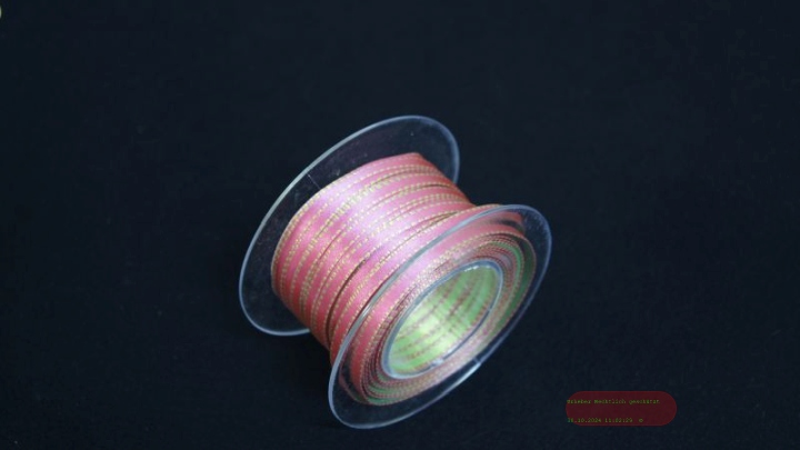 Band 25m/ 5mm, Würfelrand, rosa/grün 65