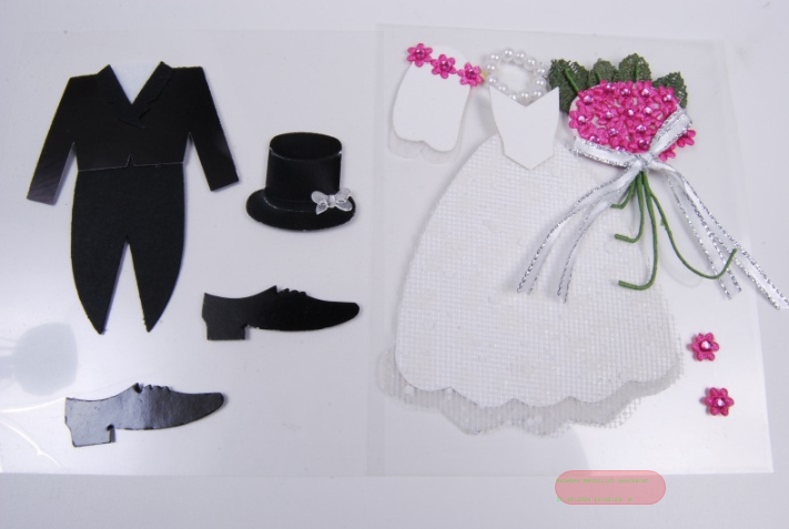 Bastelset, Brautpaar 8cm - 6 Motive klebend, weiss/schwarz