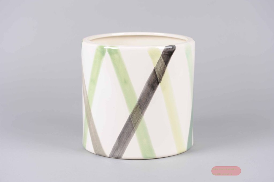 - Blumentopf, Pinselstreich Ø24x H23.5cm, weiss-grün*