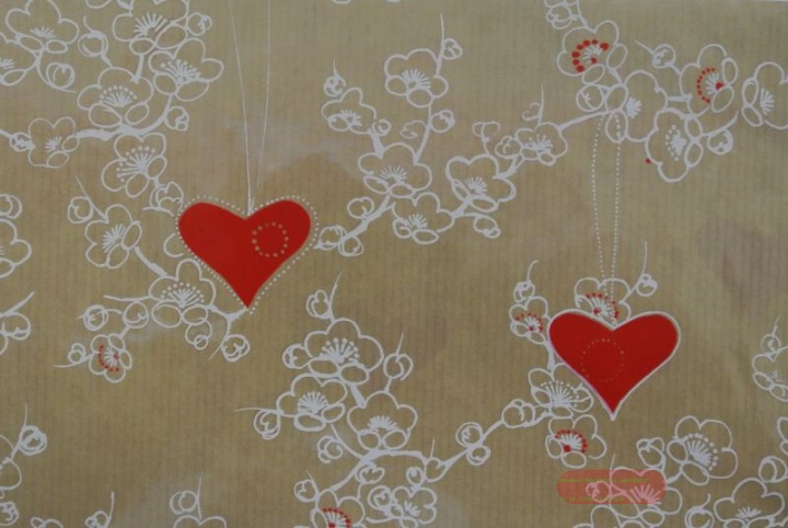 Bogen 70x 100cm, Folie Herz, rot/weiss