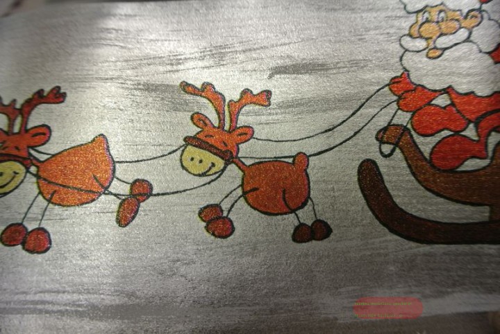 Bogen 70x 100cm, Niko auf Schlitten, silber