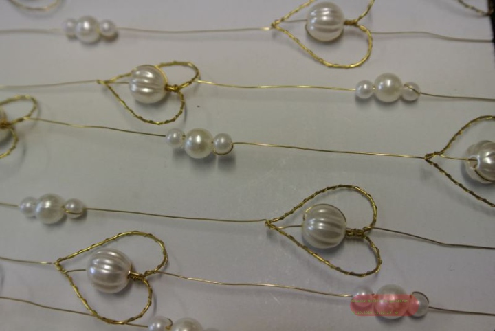 - Girlande 1.8m/ 20mm, Drahtherz mit Perlen, gold
