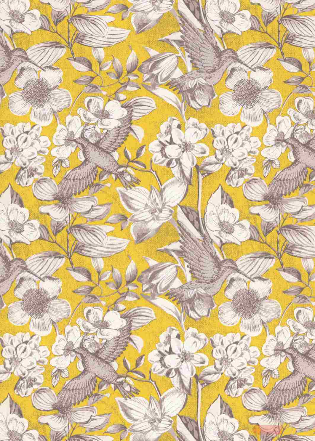 Rolle 200m x 100cm, Colibri & Blumen, gelb