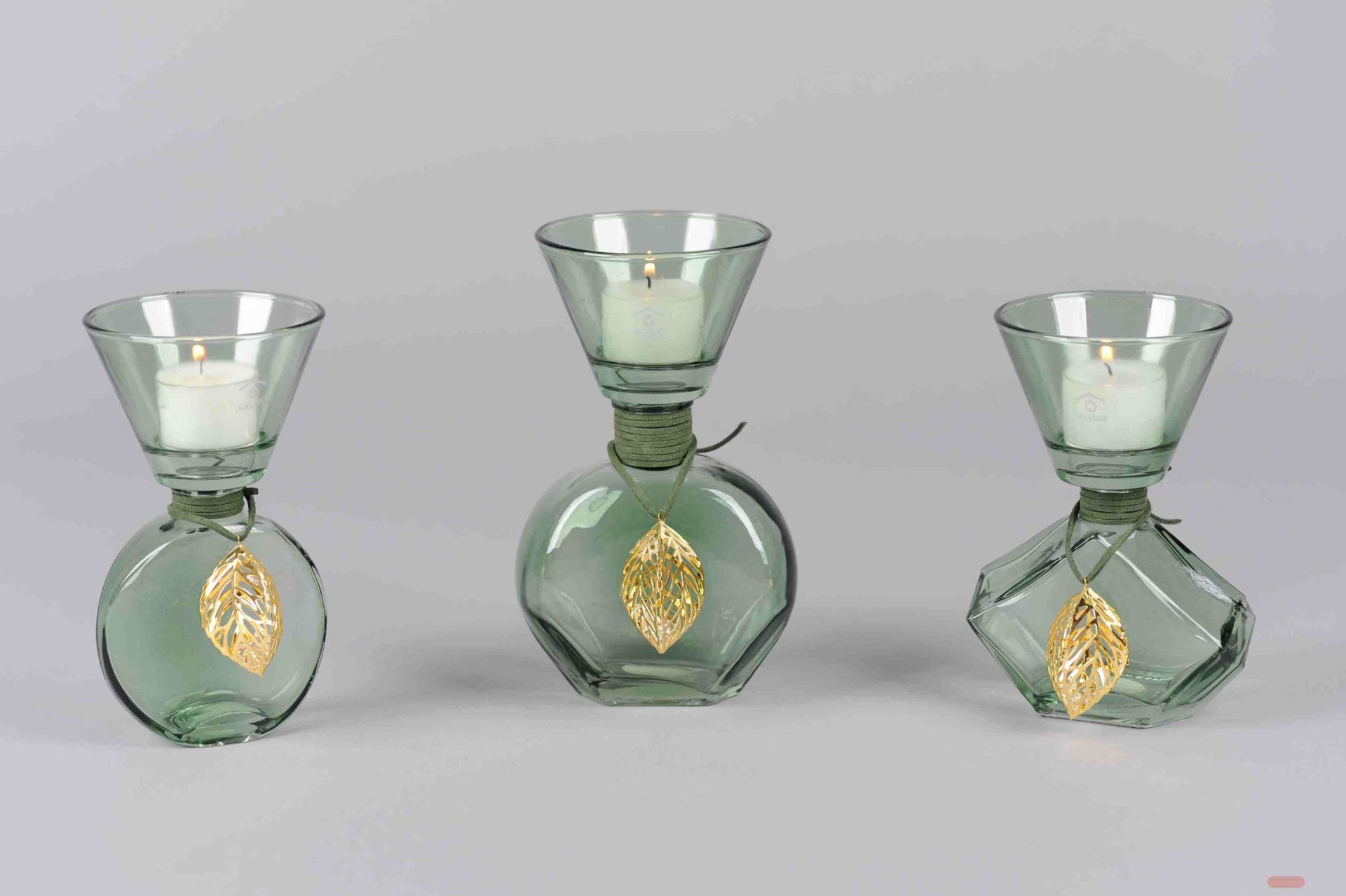 Teelicht, mit Schmuckstück - set/3, grün