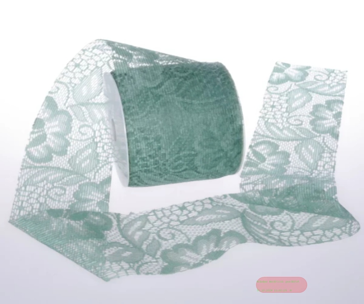 Tischläufer 25m/ 70mm, Lace Roses, patinagrün