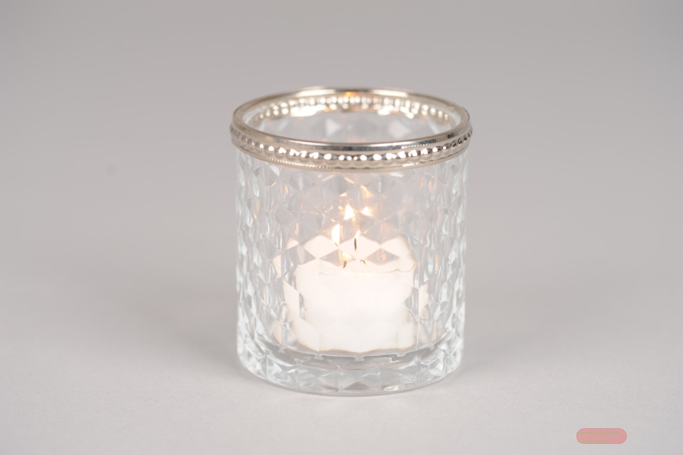 Votiv Windlicht, Tiara Ø7x H7.5cm Silberkragen, klar