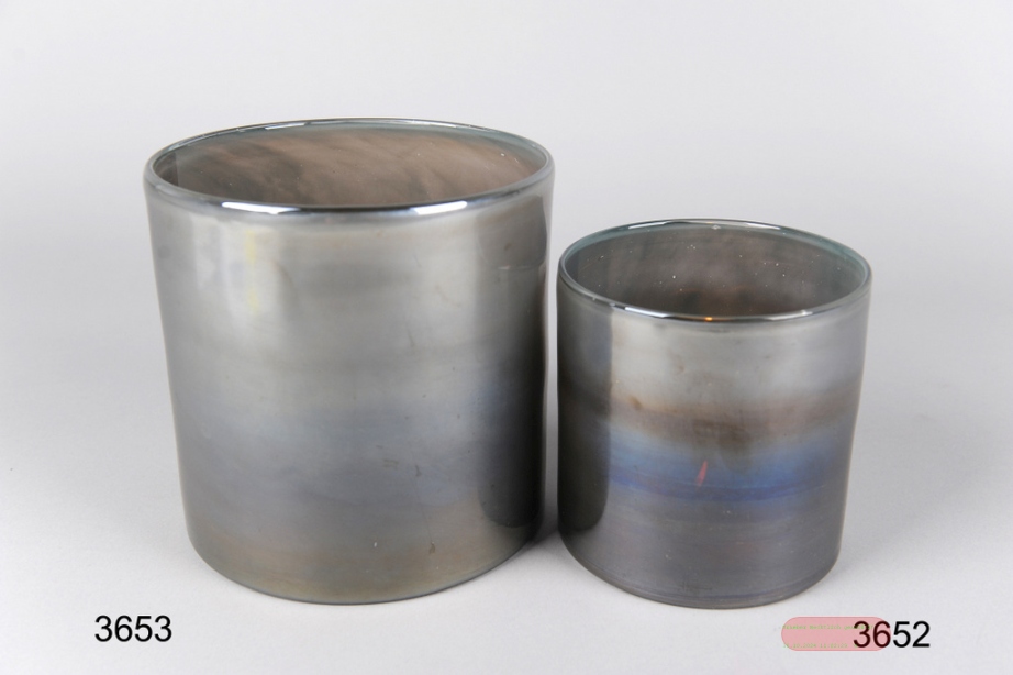 - Windlicht Glas, Satini Ø15x H15cm, dunkelgrau